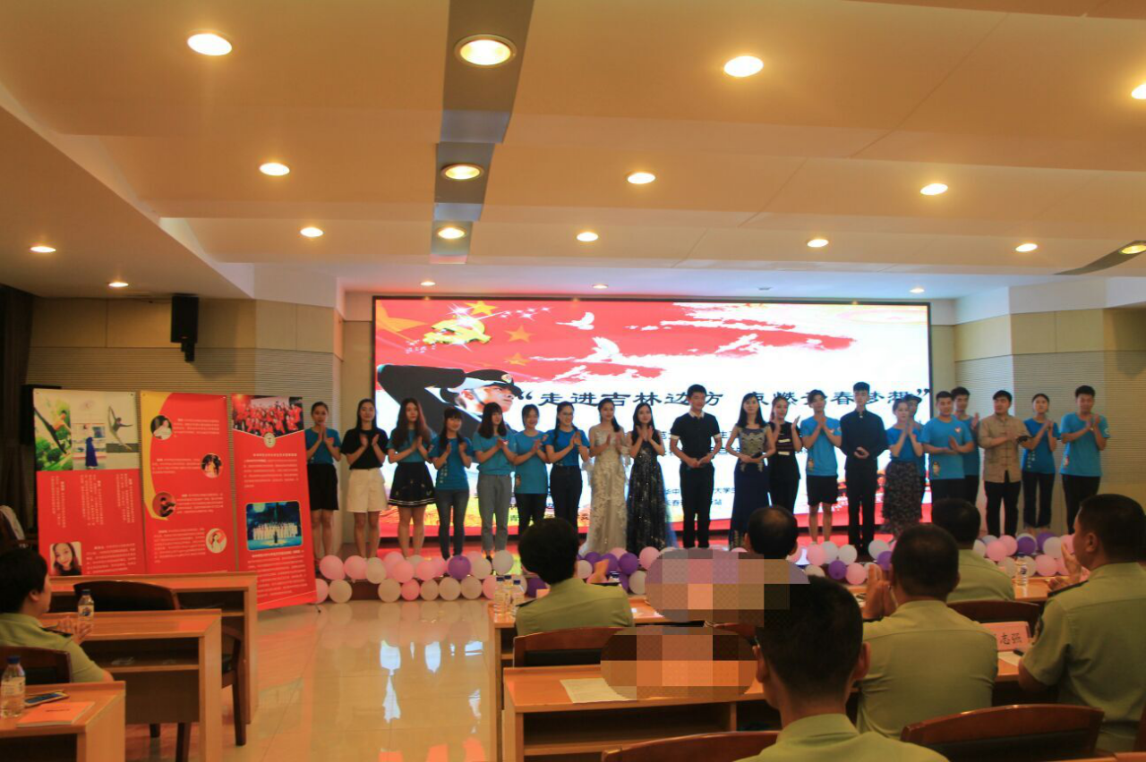 八月一日下午5点,实践队队员在长春边防检查站举办了“走进吉林边防 点燃青春梦想”八一文艺汇演,将对祖国边防事业和人民军队的无限敬仰之情融入到“民族情·家国情”、“不同的年代·同样的青春”、“请祖国放心·请人民放心”三个篇章的精彩节目中,以实际行动践行军民融合的国家战略。吉林省公安边防总队领导和长春边防检查站的官兵们一同观看了演出。我校艺术团实践队选送的《妻子》、《万泉河水清又清》(音乐学院何文钰演唱、音乐学院徐赞竹笛伴奏)两首歌曲登上了吉林省公安边防总队机关八一文艺晚会。歌声配合笛声,深刻的表现出军民团结一家亲的动人景象,深化了晚会主题。歌曲伴随实践队活动回顾视频,将晚会气氛推向了高潮。
