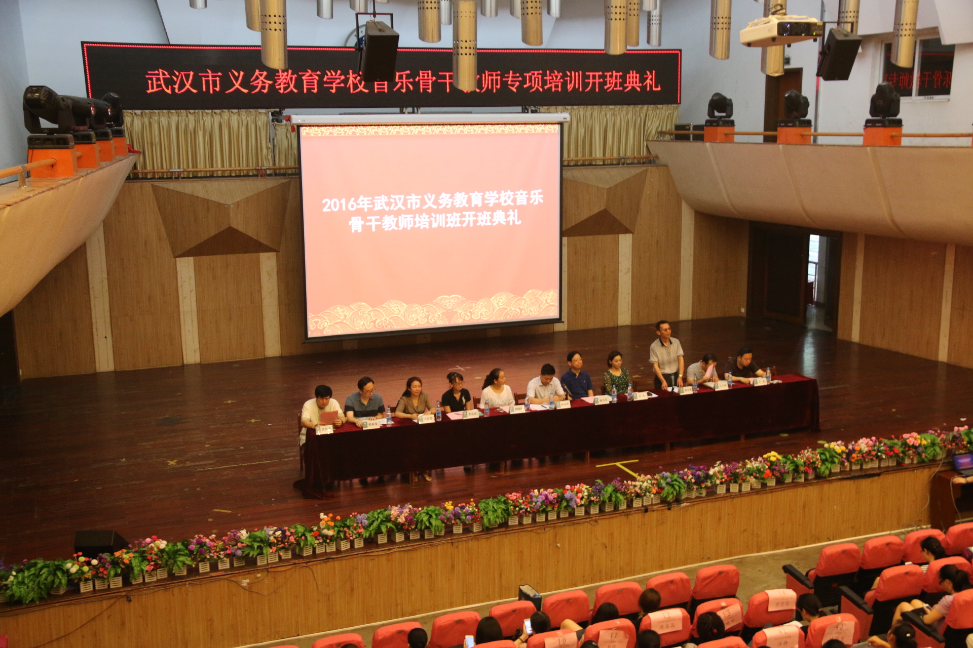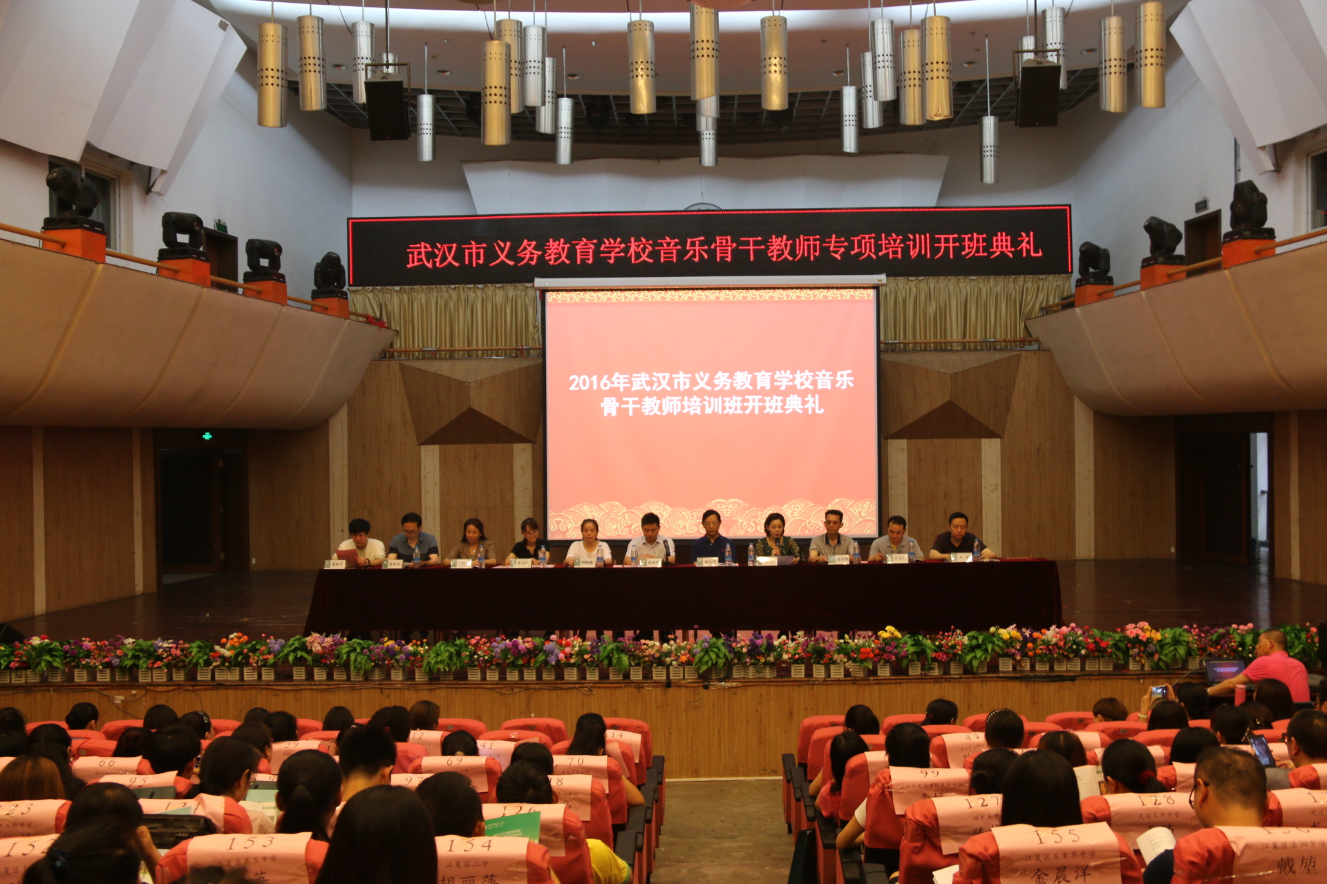 2016年7月18日上午,“武汉市义务教育学校音乐骨干教师专项培训”开班典礼在我院音乐厅举行,近两百名中小学音乐骨干教师抵达我校,开始为期八天的专项培训课程。
