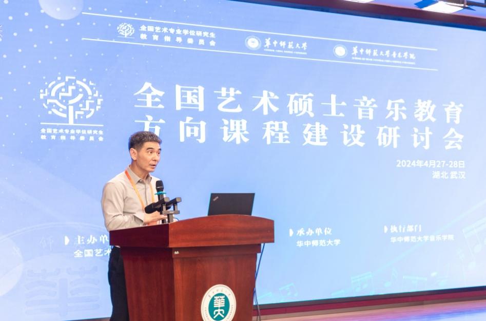 4月27日至28日,全国艺术硕士音乐教育方向课程建设研讨会在华中师范大学召开。会议由全国艺术专业学位研究生教育指导委员会(以下简称教指委)主办,华中师范大学音乐学院承办。大会围绕音乐教育方向课程建设工作进行了深入探讨,特别是针对协作类课程与主课课程的教学设计与课程开发等方面,同时大会还致力于推动音乐院校积极开发并提供优质的核心在线课程资源,不断提高在线课程的教学水平。