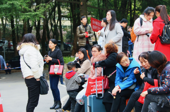 2019年3月11日,是华中师范大学音乐学院19级音乐与舞蹈专业招生考试的第一天。早晨八点,音乐学院门口就站满了焦急等待的考生家长。他们三五成群,有的坐在门口,有的团坐在台阶上,相互交流着孩子考试的心得与考试相关的信息。