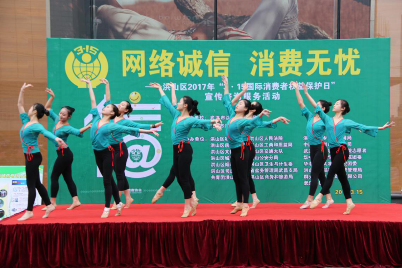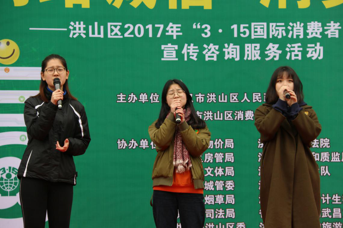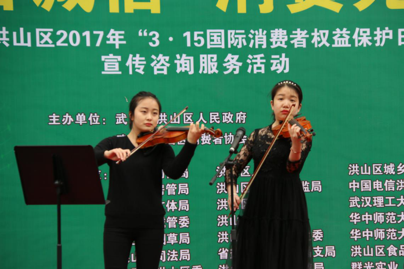 为深入开展2017年3.15“网络诚信,消费无忧”主题宣传,引导消费者理性健康消费, 我校音乐学院青年志愿者们参加了在群光广场举办的“3·15”国际消费者权益保护日宣传活动,我院派出了优秀志愿者组成的表演队,为在场观众带来了一场别开生面又精彩迭出的表演。