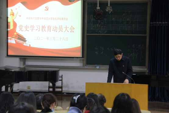 学院党委把开展党史学习教育作为重要政治任务,制定学院党史学习教育工作方案,建立学院党委、党支部、党员“三级联动”的工作机制,通过召开党史学习教育动员大会,动员全院师生积极参加党史学习。学院党委理论学习中心组、全院教职工、各党支部、团支部以习近平总书记关于党的历史的重要论述为重点内容,通过听报告、读原文、写心得等多种形式,开展中心组党史学习9场、全院教职工党史学习10场、支部主题党日活动50余场,切实推动党史学习教育入脑入心。学院党委还组织开展专题党课系列活动,以“音乐中的党史”为大主题,师生党员创作,讲专题党课的形式开展学习教育,其中音乐学系以“音乐中的党史”为题,结合音乐史主讲专题党课,舞蹈系开展“经典红色舞蹈剧目赏析”、“舞蹈中的党史”等主题学习、钢琴器乐联合支部组织开展“奏响红色经典”主题音乐会等。