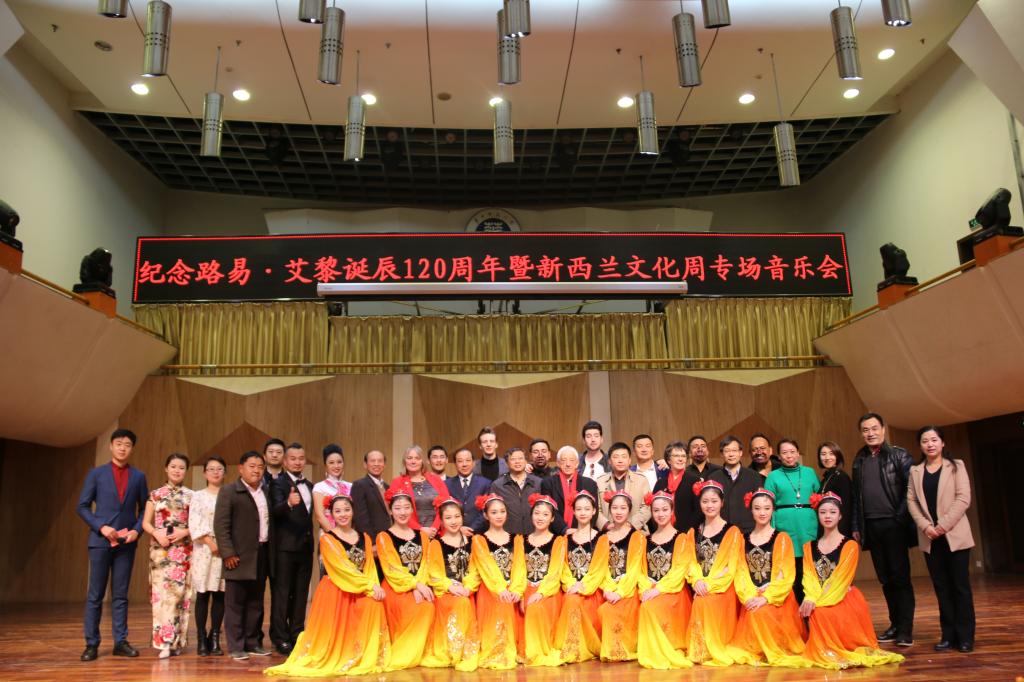 演出结束,莅临本场音乐会的各位嘉宾,以及所有演员上台合影留念。至此,纪念路易·艾黎诞辰120周年暨新西兰文化周湖北省大学生专场音乐会圆满落幕。