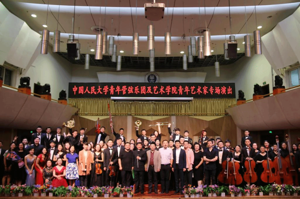 中国人民大学艺术学院青年管弦乐团成立于1999年,建立初期由前中国国家交响乐团、中央音乐学院前指挥系主任徐立新教授担任常任指挥,目前常任指挥王琳琳,客座指挥孙逊、音乐总监张放、乐队指导程亚威、齐悦。乐团由优秀学生组成,以青年人卓越的精神面貌、热情洋溢的演奏风格,娴熟的专业技巧和极强的艺术感染力赢得了人们的一致赞誉。作为全国综合类高校音乐专业学生组成的优秀团队,长期坚持严格训练和高水平艺术实践,多次出访国际国内多所城市和高等院校进行交流演出,受到业界高度评价和热烈欢迎。
