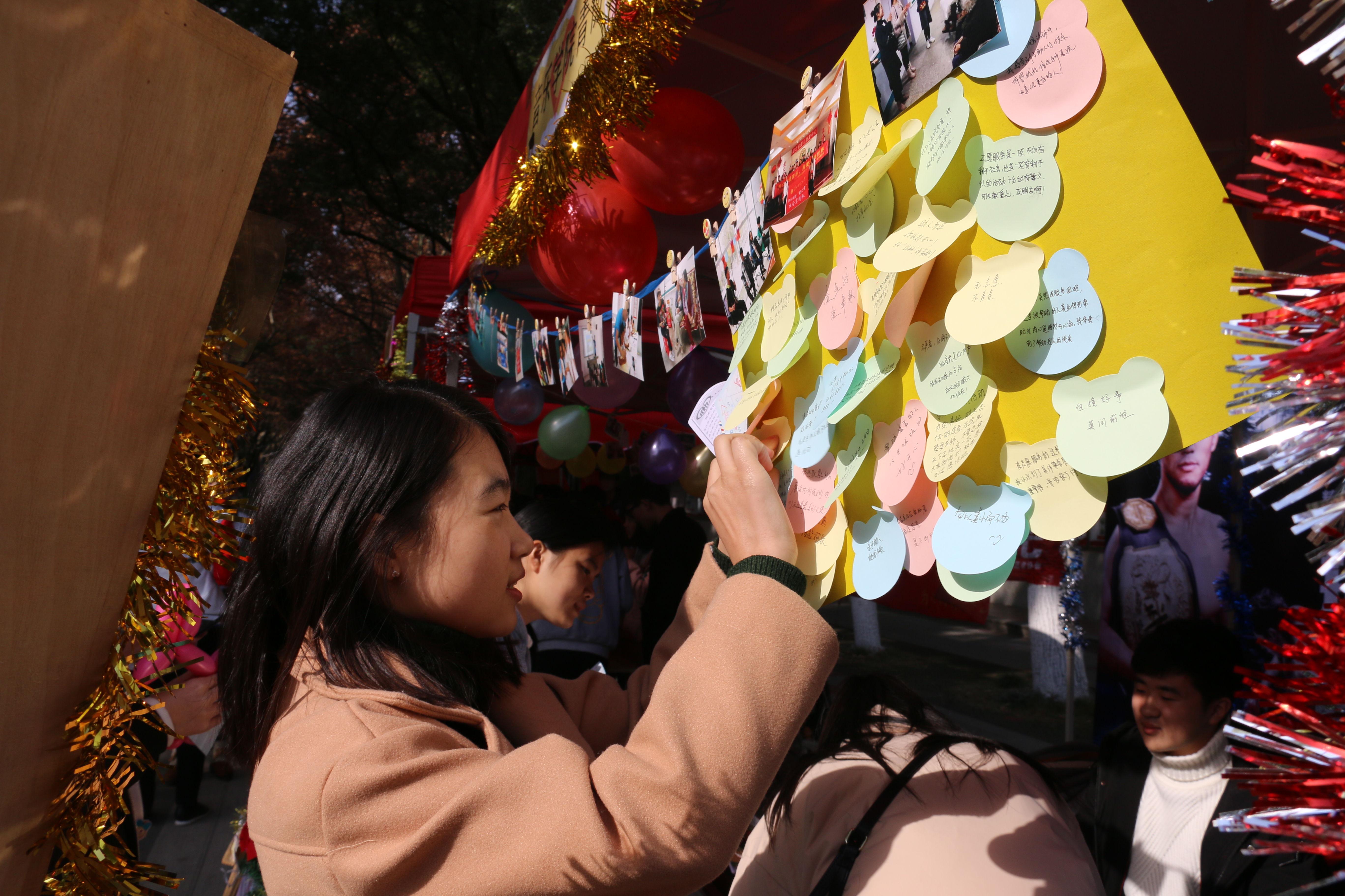 音乐学院的展示区则倡导同学们将对志愿服务活动的心得和自己的故事用便利贴记录