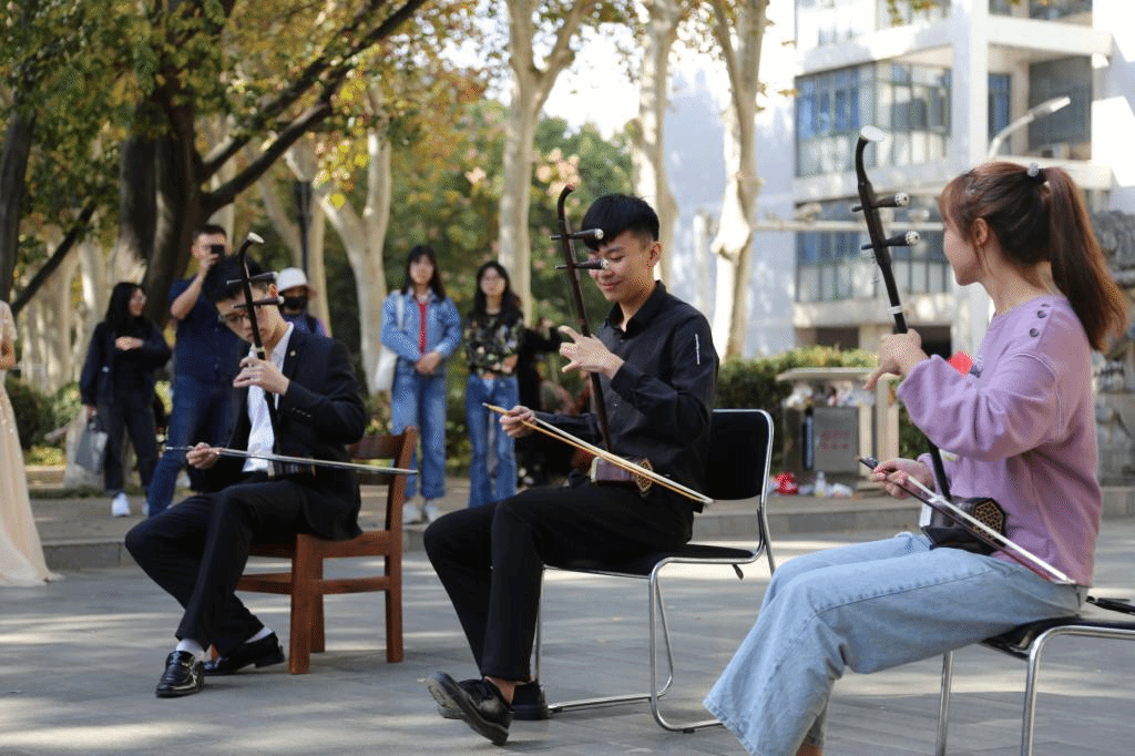 (通讯员:许文 袁雅婷 程哲 卢嘉琪 王佳睿)11月15日,华中师范大学第27届科学文化节在博雅广场盛大开展。为让更多对音乐感兴趣的同学们了解音乐、感知音乐、体味音乐。音乐学院的学生们组织了第三届“知音.爱乐”桂子山乐器科普展,为同学们普及乐器的知识,通过现场演奏给观众们带来更直观的视觉体验。