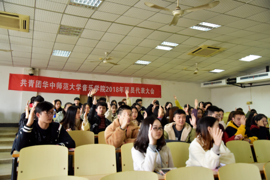 (新闻:周格如 摄影:程哲)根据《中国共产主义青年团章程》相关规定,为了深入贯彻学习党的十九大、团十八大精神,为学校“双一流”建设凝聚青年力量,报学院党委和学校团委批准,2018 年度华中师范大学音乐学院团员代表大会于12月23日上午9:00在音乐学院427教室隆重举行。