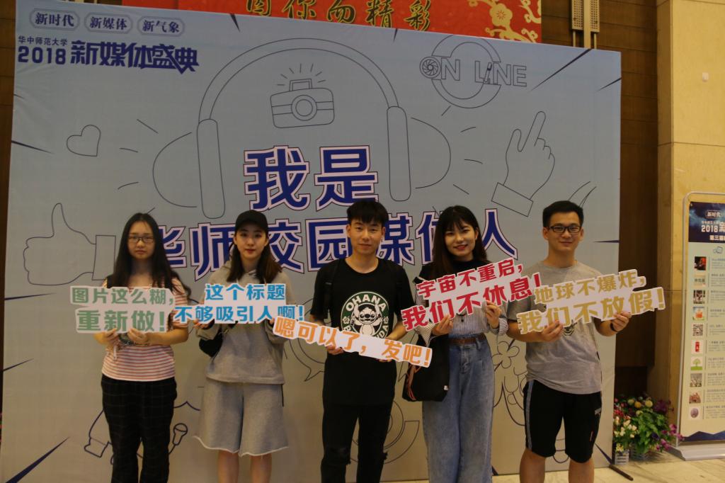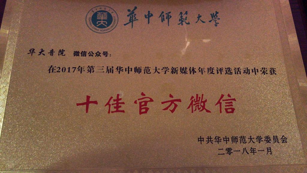 (通讯员:李雅璇 摄影:冯望)2018年4月20日晚7点半,华中师范大学2018年度新媒体盛典于华中师范大学音乐厅顺利召开。团委书记吴文劼,音乐学院新闻宣传中心指导老师马思明,团委副书记冯望以及音乐学院新闻宣传中心成员5人出席了本次盛典。在2017年第三届华中师范大学新媒体年度评选活动中,音乐学院官方微信获“十佳官方微信”荣誉称号,以及院党委叶雷副书记运营的“老叶伴青春”、院团委书记吴文劼运营的“桂子山下种花”获得了“十佳自媒体”的荣誉称号。