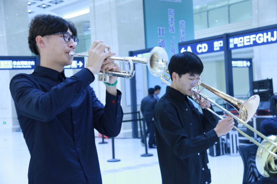 (新闻:周格如 摄影:周格如)2017年12月26日上午9:00,武汉地铁八号线开通仪式在黄浦路站举行。华中师范大学音乐学院“爱之音”圆梦服务队到达现场进行演出,为八号线的开通仪式增添一份色彩。