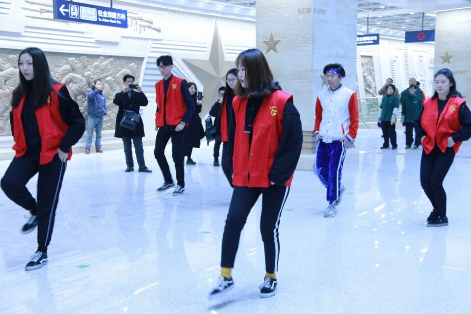 “爱之音”圆梦服务队的成员们身着地铁站志愿者的红色马甲,伴随着音乐,以一只动感的别具一格的舞蹈表演《seve》,吸引了市民的注意力。接下来是由音乐学院2016级孙麒等五位志愿者带来的管弦五重奏《铃儿响叮当》迎合了圣诞节主题气氛,深得市民的喜爱。之后,五位志愿者在现场还演奏了《夜来香》和《加勒比海盗主题曲》,其默契的配合加上特别的编曲让市民们耳目一新,不仅为地铁站营造了活跃、热烈、欢快的气氛,同时也向广大观众展现了华中师范大学音乐学院学子的青春活力与朝气蓬勃。