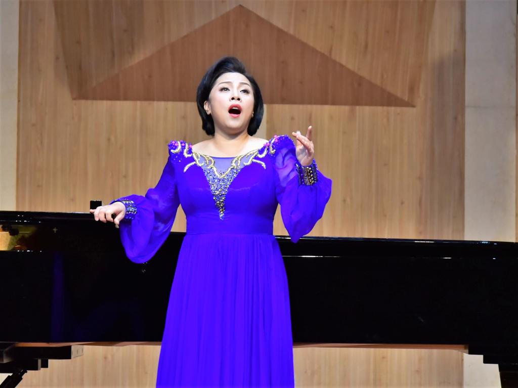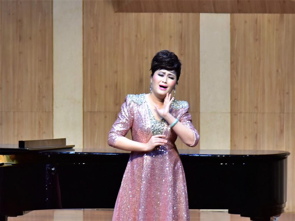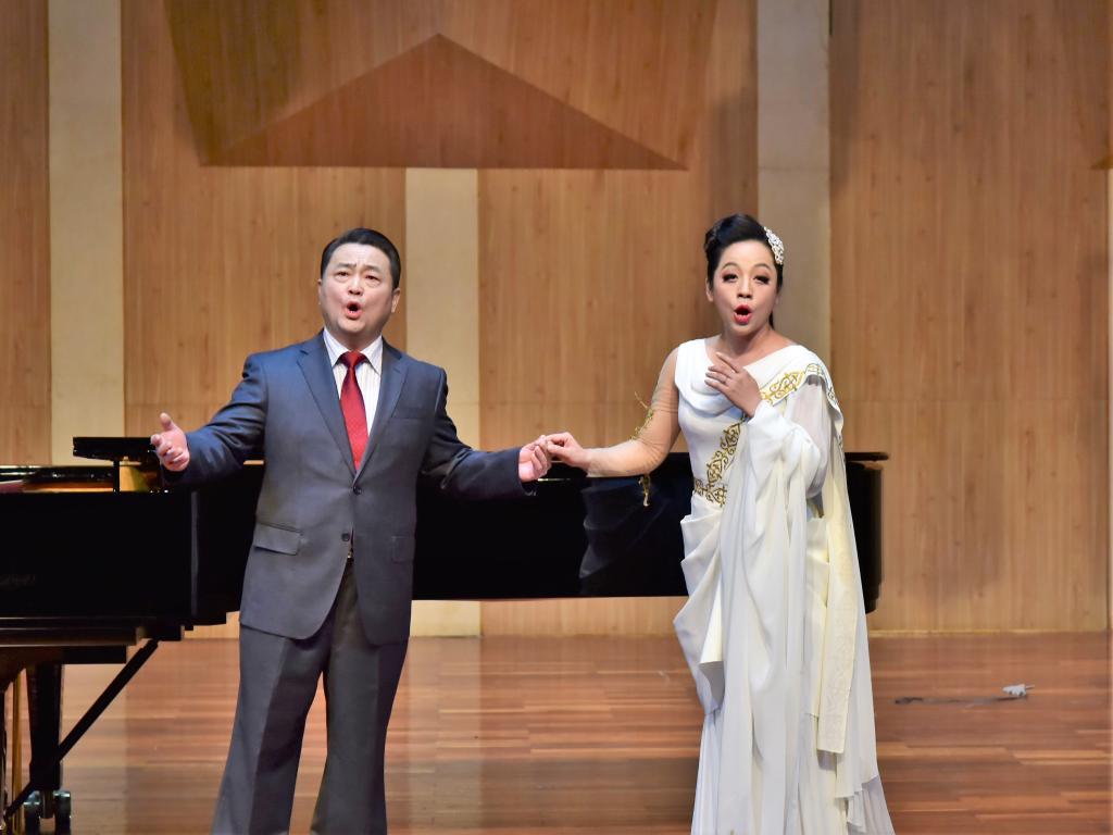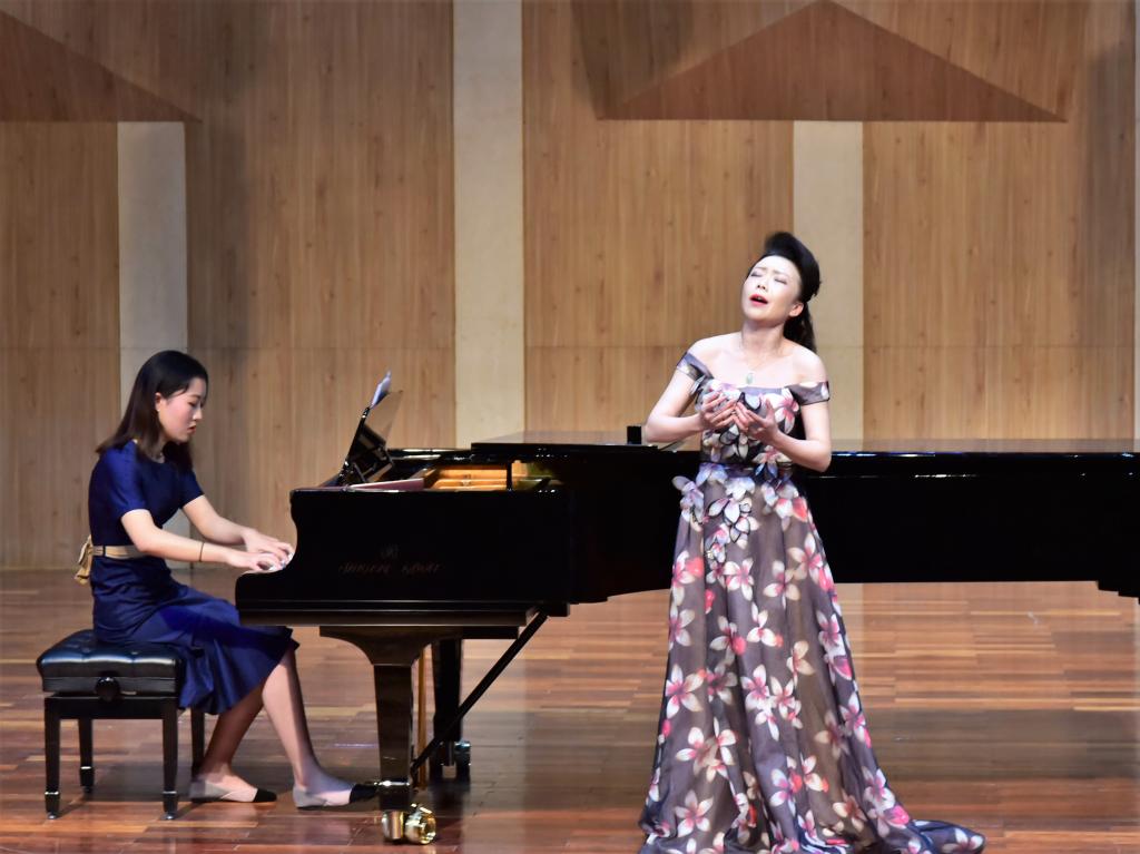 音乐会下半场开场,王洪涛老师磅礴演唱《大江东去》《登鹳雀楼》以贯穿山河之势感染在场听众;紧接着王菊老师将听众带入《江城子·乙卯正月二十日夜记梦》词人苏轼的梦境感受诗人内心的凄婉悲凉;随后刘盛昌老师又为大家倾情演唱一首《杏花天影》;接着段传娅老师以一首《阳关三叠》生动再现诗人王维分别友人时的深沉惜别与无限留恋;其后蒋文娟老师连唱两首《枫桥夜泊》《鹧鸪天·犹恐相逢是梦中》深切诉说思想之苦,将诗人的孤寂忧愁展现得淋漓尽致;接下来的朱国治、秦海群老师默契配合深情演唱《花非花雾非雾》将朦胧美感染给现场听众,吟唱结合引得现场掌声不断;音乐会的末尾由曾春容老师演唱《别亦难》以女性视角表现对爱情灼热的渴望和坚忍的执着,深微绵邈极为传神。