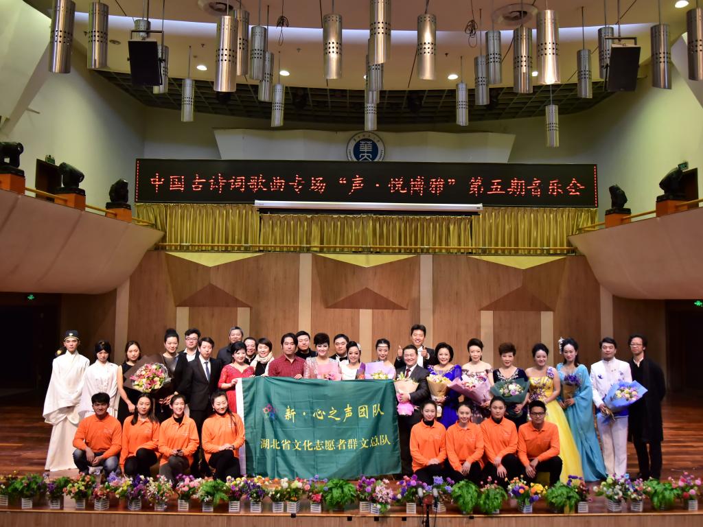 (新闻:张萌 摄影:殷圣媛)2017年11月21日晚19:30,由华中师范大学音乐学院主办,湖北省群众艺术馆、文化志愿者群文总队协办,湖北省文化厅公共文化处为指导单位的湖北省文化志愿者进校园——中国古诗词专场“声·悦博雅”第五期音乐会在华中师范大学音乐厅上演。