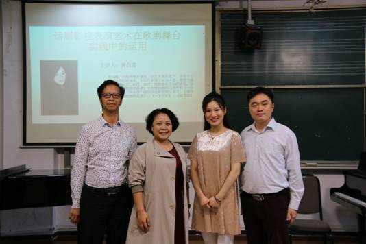 9月29日下午2点,青年演员黄白露应邀在华中师范大学音乐学院427教室举行了题为“话剧影视表演艺术在歌剧舞台实践中的运用”的学术讲座。讲座由音乐学院王洪涛副教授主持,出席本次讲座的有我院周燕副教授、陈岭副教授、涂波副教授以及《歌剧表演实践课》选修生和院内各专业的学生共近100人。