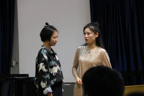 黄老师围绕表演的内涵问题,从歌剧与话剧的区别与共性以及对于声台形表的理解两个方面讲述了为什么歌剧专业的学生要上表演课。根据学生的实际情况亲身教授学生们如何克服上台紧张的问题。