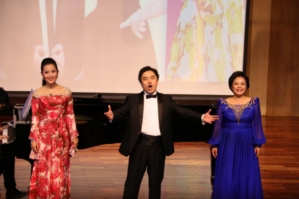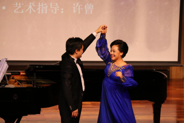 音乐会的末尾,由王洪涛老师,周燕老师带来了二重唱,歌剧《茶花女》选段《饮酒歌》。在两位老师的翩翩舞蹈中,晚会的气氛达到了高潮。最后,由万莉,王洪涛,周燕三位老师一起,为大家带来了最后的结束曲。