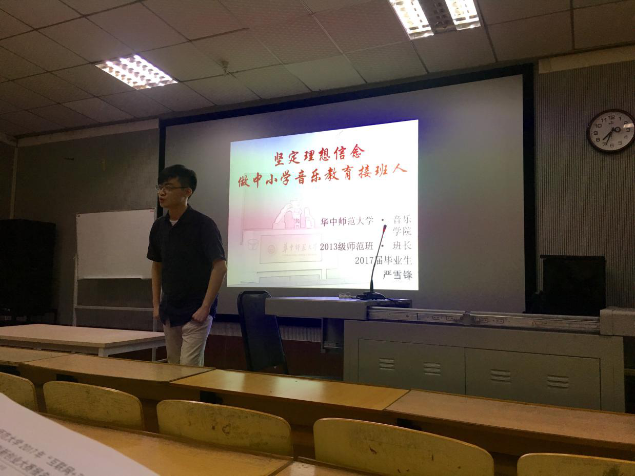(新闻:廖欣怡 摄影:庞涵菲)时光匆匆,一年毕业季如期而至。2017年6月2 日15:30分,百生讲坛系列活动之“优秀毕业生分享会”在音乐学院104教室进行。此次分享会主要面对全院免费师范生展开,邀请到13级严雪锋、曹佩两位优秀师范生代表为大家分享大学四年的成长经历与心得。
