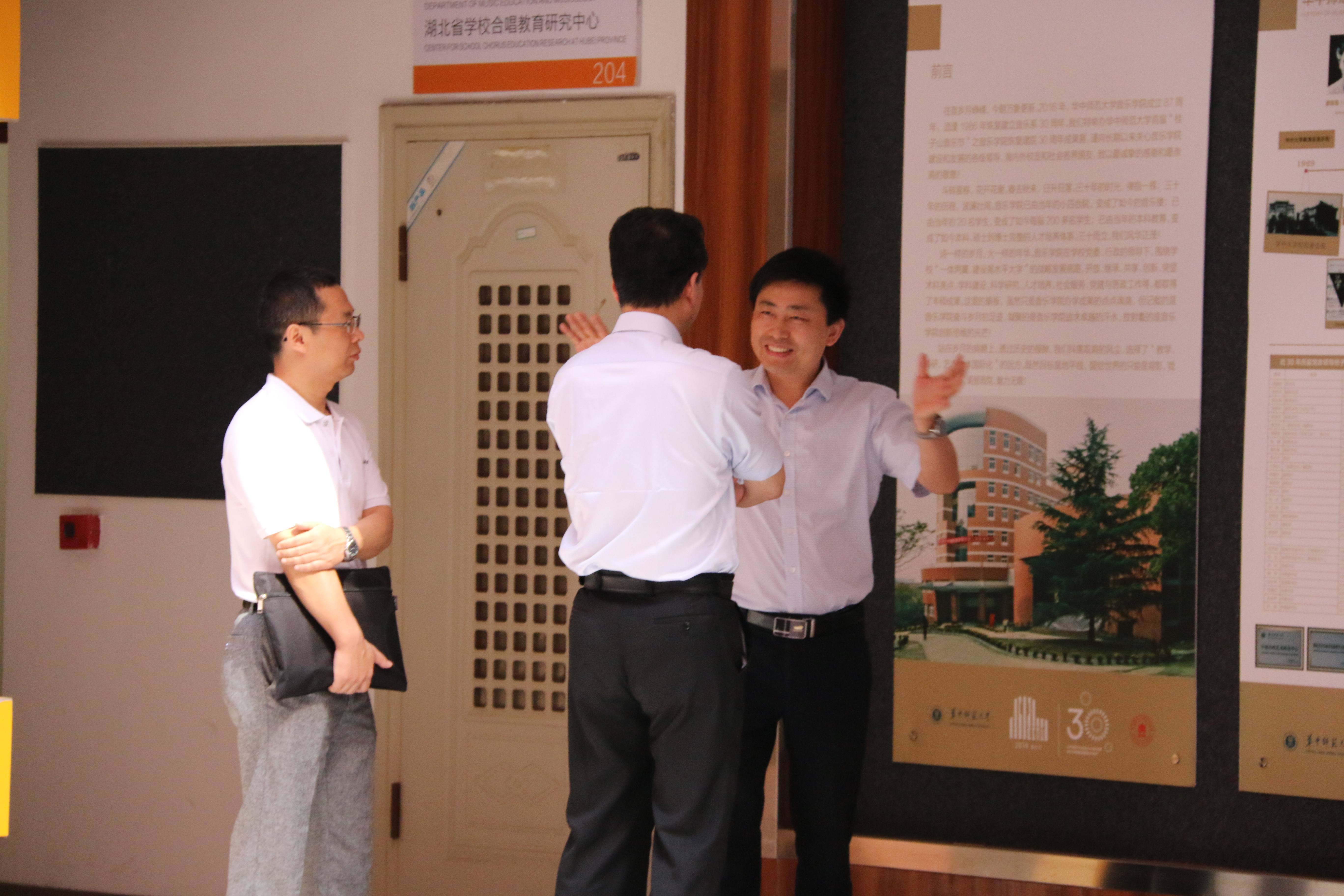 (新闻:徐思敏)2017年5月25日上午九点,在音乐学院317学术报告厅,举行了音乐教育湖北省实验教学示范中心(华中师范大学)教学指导委员会会议。出度本次会议的校外专家有:原湖北省文联副主席、国家一级作曲黄中骏,湖北省文联副主席、国家一级编导梅昌胜,武汉大学教授刘进清,武汉音乐学院教授陈谨。同时,华中师范大学校领导及职能部门、院系相关人员出席了会议,他们是华中师范大学副校长彭南生、实验设备处副处长梅伏生、人事处副处长陈德军、音乐学院党委书记孙永祥、音乐学院院长孙逊、音乐学院副院长吴凡、实验示范中心副主任张业茂、音乐学院教师谭述晔、汪瑶、朱宇翔、常晓玲、许曾、覃晓萍等中心相关教师及工作人员。
