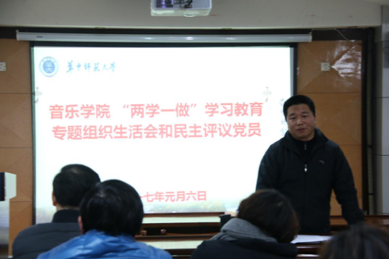 根据中央《关于全体党员开展“学党章学党规、学系列讲话,做合格”学习教育方案》(中办发[2016]14号)和校党委《关于学校认真做好“两学一做”学习教育专题组织生活和民主评议当党员工作的通知》(华师党字[2016]108号)的相关要求,音乐学院分党委于2017年1月6号和1月8号分别组织教职工党支部和本科生党支部、研究生党支部开展“两学一做”学习教育专题组织生活会和民主评议党员工作。
