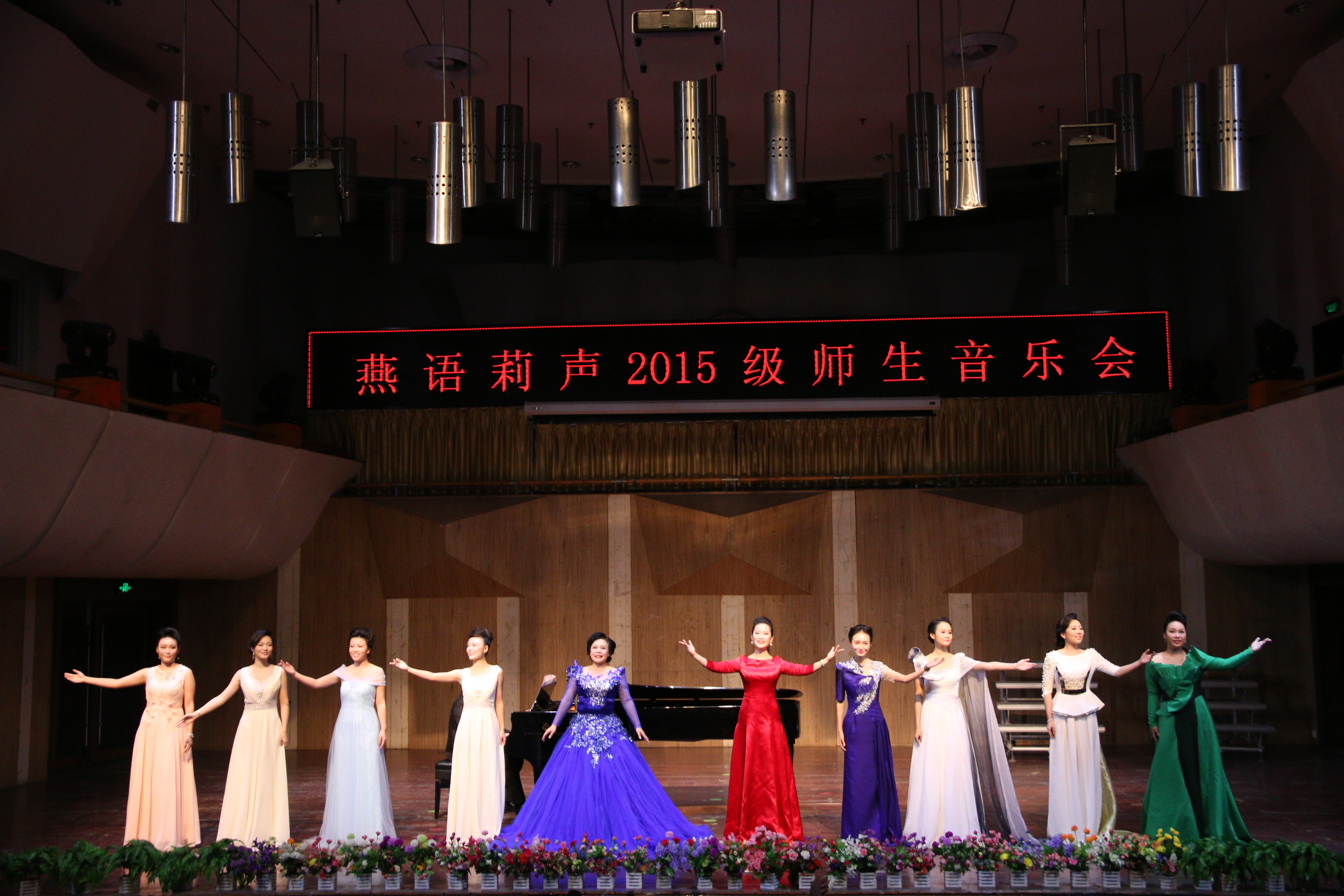 本次音乐会以三种形式呈现:学生汇报,老师展示,师生共唱。周燕老师在开场时介绍:“去年的燕歌莉声专场反响很好,于是今年想将此延续下去便举行了本次音乐会。相比较去年的个人独唱,今年主要以师生合作为主,使15级的学生们既完成了选修汇报又得到了舞台经验。”