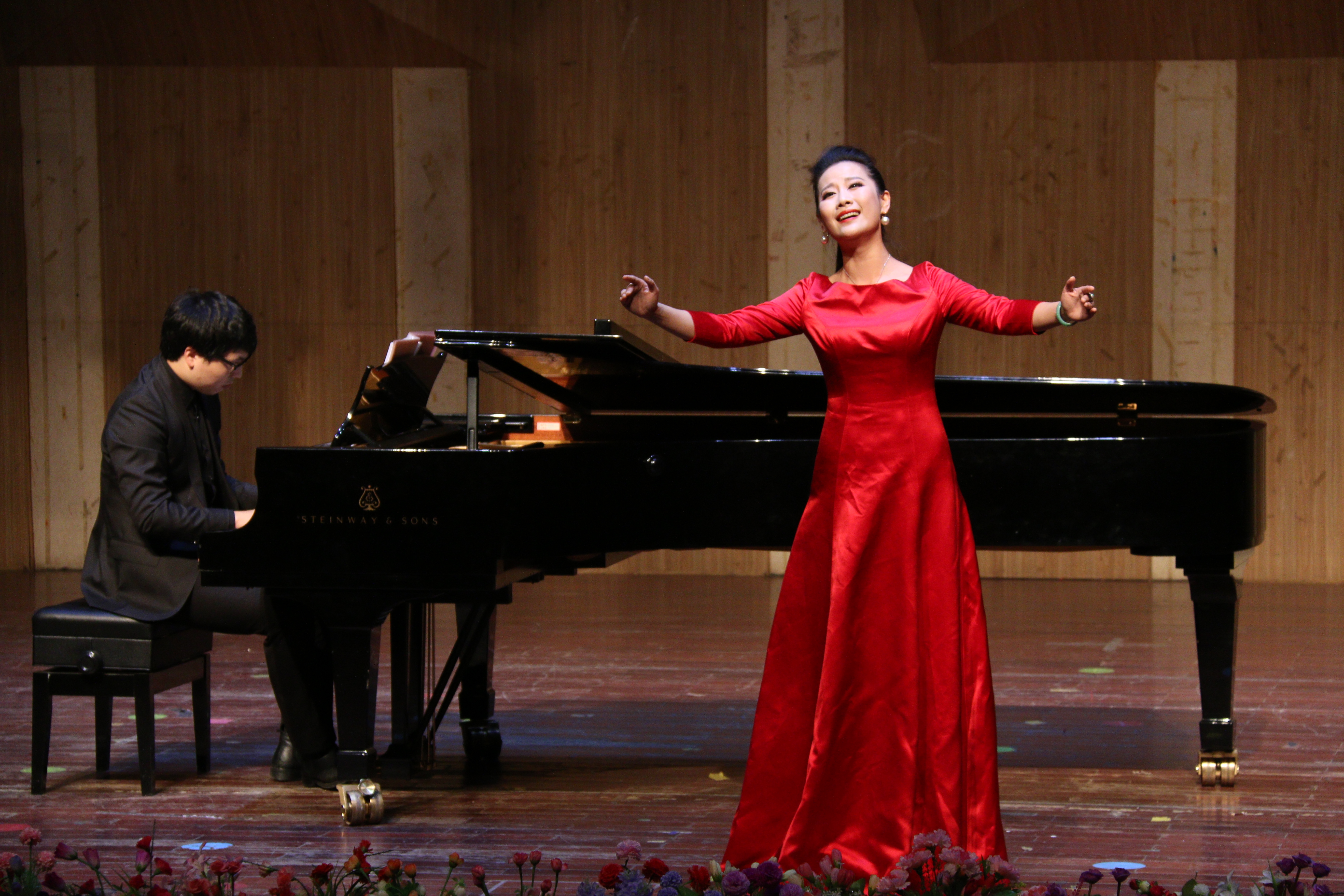首先,由万莉老师指导的学生李思洁以一曲带有浓郁民族特色的陕北榆林小曲《五哥放羊》拉开了音乐会的序幕,随后以一曲《请到湖北来看湖》使在场的观众们深深感受到民族唱法与众不同的魅力。许博文演绎的《断桥遗梦》使在场观众们可以感受到一个男人失去了一直无微不至照顾自己的妻子的哀伤与不舍,如歌如泣的歌声让听者都不禁动情。由周燕老师指导的学生李畅姁展现了歌剧《艺术家的生涯》中经典片段《人们叫我咪咪》,不同的语言、不同的形式、不同的表演方式在回味经典的同时也为观众们呈现艺术间差异的奇妙。