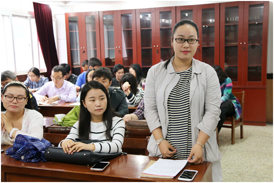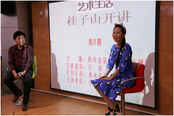 此次艺术生活桂子山开讲的嘉宾是音乐学院声乐系的青年教师万莉老师。万莉老师此次讲话的主题是“将对音乐的热爱进行到底”。万莉老师主要从三个方面来讲她对于音乐的热爱。首先,万莉热爱她的歌唱生活。万莉说她从小就是一个爱唱歌的女孩,只要是有人问她的梦想是什么,她始终只有一个答案,就是长大了之后想当一个歌唱家。当万莉2001年第一次踏入华中师范大学校门时,她就觉得她离自己的梦想更近了,在本科期间她实现了她很多的第一次,比如她第一次去专业的录音棚录音,演唱了陈朝汉教授的《跳春光》;第一次以组合的形式参加青歌赛,拿到一个很不错的奖项;第一次受推荐参加了央视的春晚。这一些小的片段都是万莉人生中非常美好而且珍贵的回忆。当万莉进入研究生的阶段时,也有很多第一次,比如第一遭遇挫折,第一次逃避比赛。因为万莉是从组合的这种形式出来的,她很感谢这个组合让她学到了一些在舞台上的经验,但是组合更多的时候是讲究一种共性,而万莉的民族声乐是很有自己独特的个性的,平常也很喜欢创作,她更想以个人的形式去唱歌给大家听,所以她在研究生阶段一直不停的在比赛,但是很多时候由于种种原因造成比赛的成绩不是很好,经过一段时间的沉淀和调整,万莉重新回到了赛场上,通过自己的努力拿到了许多金奖,尽管流了很多的汗水和泪水,但是她觉得这一切都是值得的。