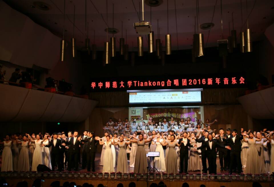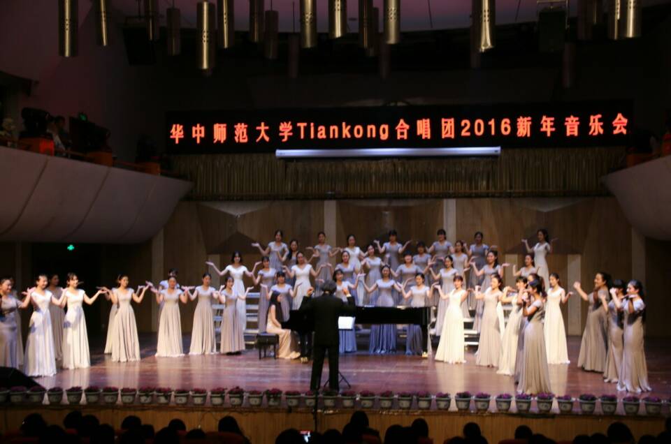 2015年12月30日晚,华中师范大学音乐学院2016新年音乐会系列之三——Tiankong合唱团新年音乐会在华中师范大学音乐厅成功举行。出席本次音乐会的领导及嘉宾有华中师范大学党委副书记黄晓玫、副校长王恩科,党委副书记覃红,华中师范大学音乐学院孙逊院长,华中师范大学音乐学院党委书记孙永祥等以及湖北省、武汉市等相关领导都光临了现场,社会各界的几百名观众聆听了这场音乐盛宴,全场爆满。