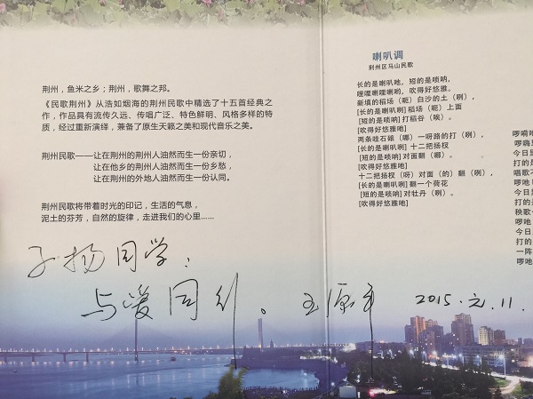 万莉老师将作曲家王原平签名的专辑送给陈子扬