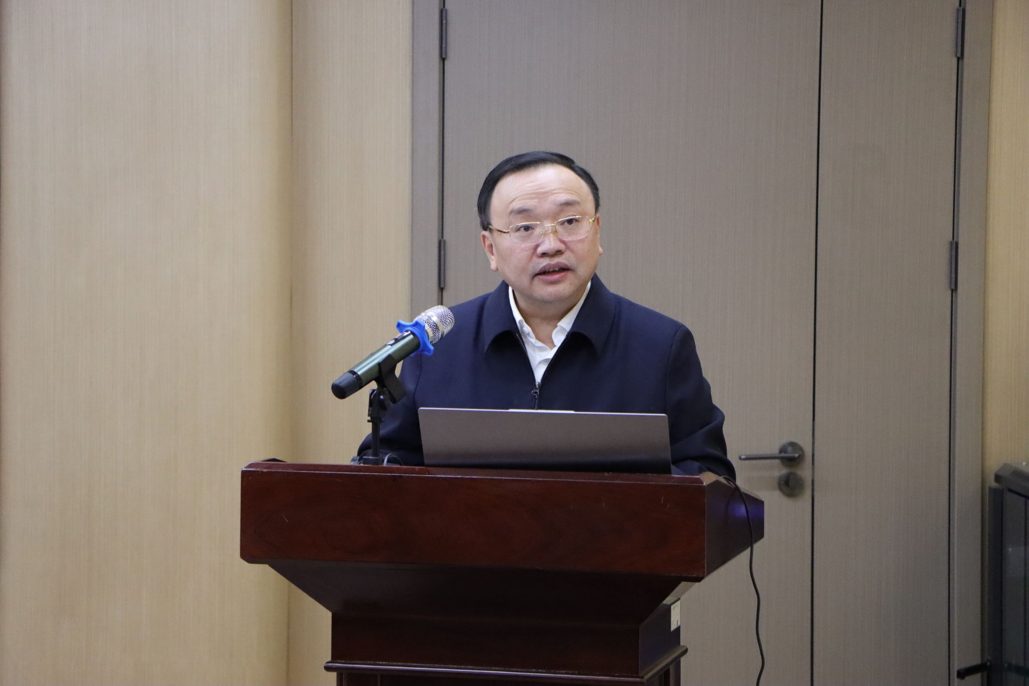 张业茂代表上一届行政班子发言,他回顾了与同志们并肩奋斗的工作历程,对学校党委、学院师生一直以来的信任与支持表示感谢,并祝愿学院在新一届领导班子带领下取得更大发展。