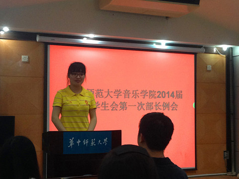 2014年6月30日,华中师范大学音乐学院2014届团委学生会第一次部长例会在323大会议室召开。团委学生会书记陈志老师以及新一届的团委学生会全体成员出席例会,会议由新任主席燕冲主持。