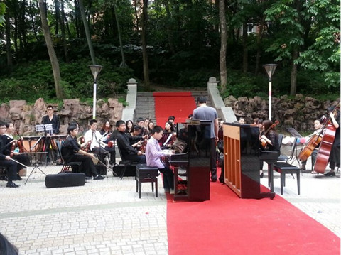 2014年5月12日下午五点,华中师范大学第二十七届桂子山艺术节之“Sring”音乐节活动第二场——室外交响乐演出活动在杜鹃广场隆重举行。现场来了很多支持音乐学院活动的校领导以及其他院系老师,也来了很多热爱音乐的同学,现场气氛热烈非凡。