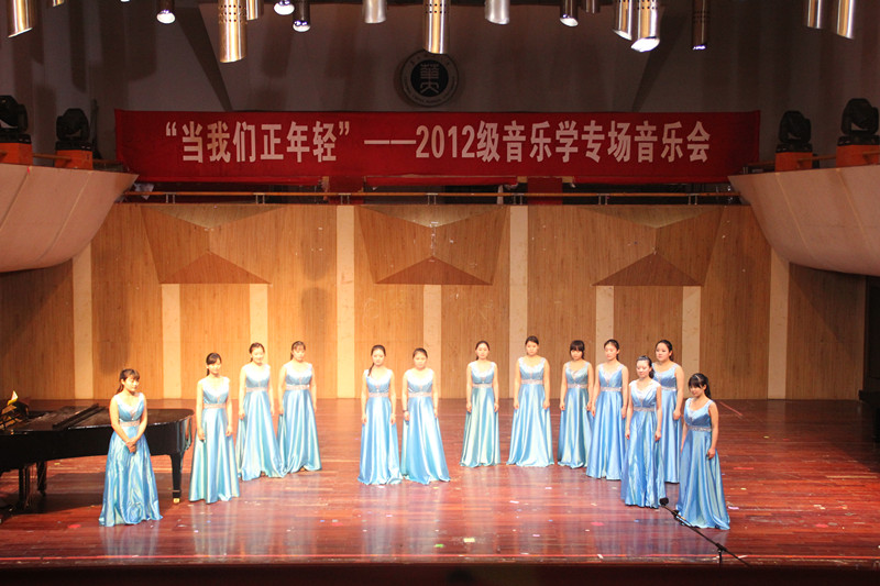 2014年4月18日晚七点半,在华中师范大学音乐厅成功举办了2012级音乐学专场音乐会。虽然当天武汉的天气有些让人压抑,但是华中师范大学音乐学院2012级的同学们用他们对音乐和青春的热情感染现场的每一位嘉宾,并且充分展现了12级同学们的音乐水准。