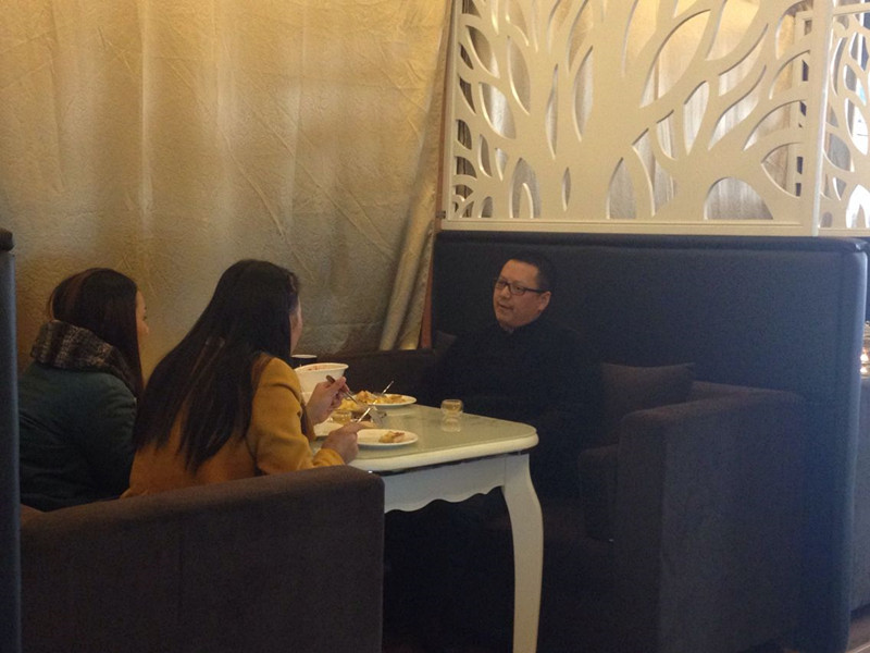 2013年12月6日中午12时,在院学生会的组织下,一次别开生面的午餐会在Cox Coffee成功举办。参加本次午餐会的有臧艺兵院长,孙永祥书记,叶雷书记,王笑合副院长,陈永副院长,闫大卫教授,以及音乐学院学生会主席潘俊,女生部部长等学生代表。本次午餐会主要是让同学们与老师近距离接触沟通交流一些问题。老师们的亲切和蔼让同学们紧张的情绪很快放松下来,与各位老师积极交流起来,整个活动现场呈现出一片温馨的景象。