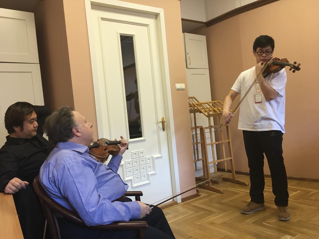 1月9日,我院器乐系学生黄宝玉,蔡佳燕,钟万有参加柴可夫斯基音乐学院弦乐系主任米哈伊·卡斯金涅尔(Михаил Аронович Готсдинер) 的小提琴大师班,获得大师的指导与认可。
