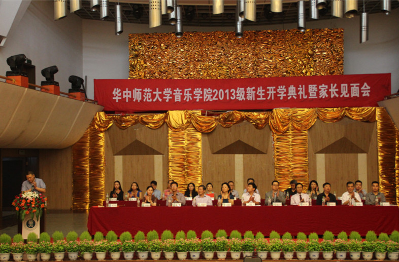 (通讯员:余玲灵 孙培 摄影:田径)“如同武汉分明的四季,你们将在这开始人生的新旅程。”9月7日晚,华中师范大学音乐学院2013级新生暨家长见面会在音乐厅隆重举行。出席此次大会的领导有音乐学院党委书记孙永祥,院长臧艺兵,副院长王笑合,副院长陈永、正处级调研员邓儒伯及院教授、系主任等,500余名学生及家长也参与了此次大会。