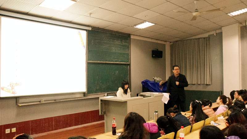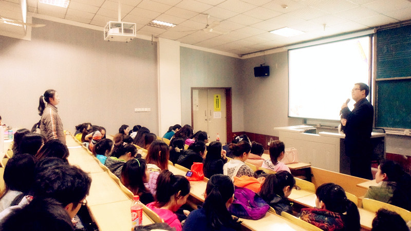 臧院长的到来,使同学们感到惊喜万分。在掌声中,院长面带笑容地走上讲台,接过10级辅导员胡伟伟老师手中的话筒,开始了今天的座谈。