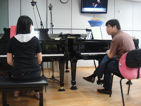 5月15日早上8:30,除舞蹈组的同学在孙书记的带领下,前往中国音乐学院进行为期一天的听课学习活动。钢琴组的同学一起去聆听了中国音乐学院旅美钢琴家孙沛老师的一节钢琴小课。在听课的过程中,孙老师对一些细节上的处理尤为重视,在给他的学生上课的时候也十分耐心,直到学生改过一个小细节上的问题后,才继续往下讲,另外,孙老师也经常把左右手的不同位置的不同旋律比作是交响乐中的某种乐器,这与我们平常上课时所接受到的知识略有一些不同,但是也让我们体会颇深。
