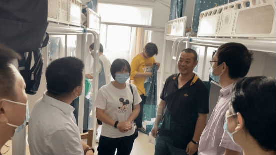 下午,学院党委书记冯圣兵、院长康瑞军、副书记董志雄、副院长詹艺虹和辅导员郭金栋一行来到新生宿舍,了解新生入学报到和住宿情况。