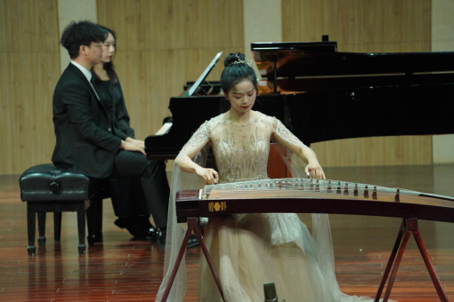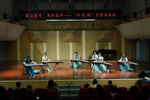 本场音乐会将“水”、“雨”、“墨”、“泉”、“江”、“河”、“湖”、“海”这八个中华传统文化里的经典意象串联起来——水凝成雨,融成墨,滴入泉,泉入江,江河汇入海,旨在呈现音乐背后的文化底蕴与精神内涵。古筝重奏《高山流水》作为开场曲目拉开了本场音乐会的序幕。正所谓“高山流水遇知音”,来宾们于高山幸会,抵流水共通,弦声润心,哲思育人。接着,古筝协奏《雨莲花开》、《水墨丹青》用音符绘出一副清淡悠远的中国画,穿过历史光阴镌刻着中华民族的精神气质。细雨尚淅沥,泉声已叮咚。古筝独奏《林泉》弹奏出林间水的律动,携宾客共赴北宋山水,触摸生生不息的水之命脉。在场观众深深沉浸其中,享受心灵与耳朵的盛宴。