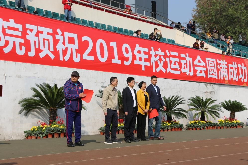 闭幕式第一项,介绍出席嘉宾。第二项,成绩汇报。分别宣读了学生女子团体总分、学生男子团体总分、体院组和教工组。之后又由体育学院党委书记郭庆宣布了体育道德风尚奖的获奖名单。闭幕式第三项便是最为激动人心的颁奖仪式。首先,是由校党委副书记陈厚丰颁发体育道德风尚奖,进行拍照留念之后又颁发了2019年校运会学生女子团体前八名奖与2019年校运会学生男子团体前八名奖,最后是颁发教工组团体前八名奖。