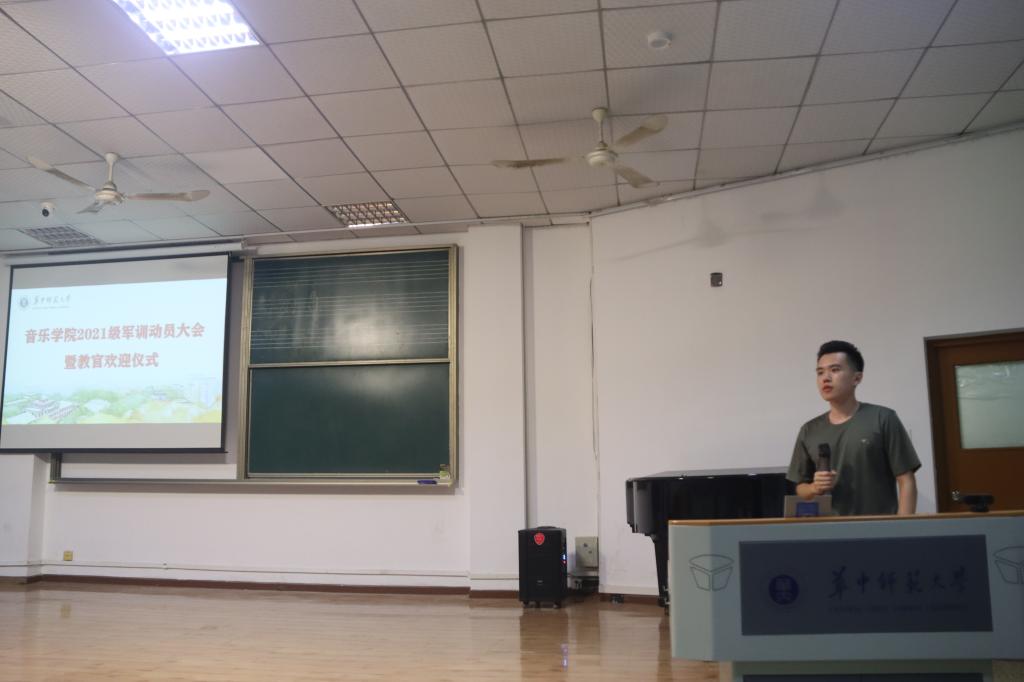 6月22日晚,音乐学院2021级军训动员大会暨教官欢迎仪式在音乐学院427教室举行。音乐学院党委副书记陈晓刚、2021级辅导员郭金栋、周柔妤、音乐学院2021级军训教官代表吴日和出席本次动员大会。