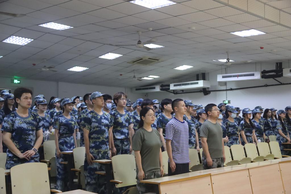教官吴日和向同学们强调队列纪律,希望同学们在训练中强化纪律意识,严格管理、要求自己。