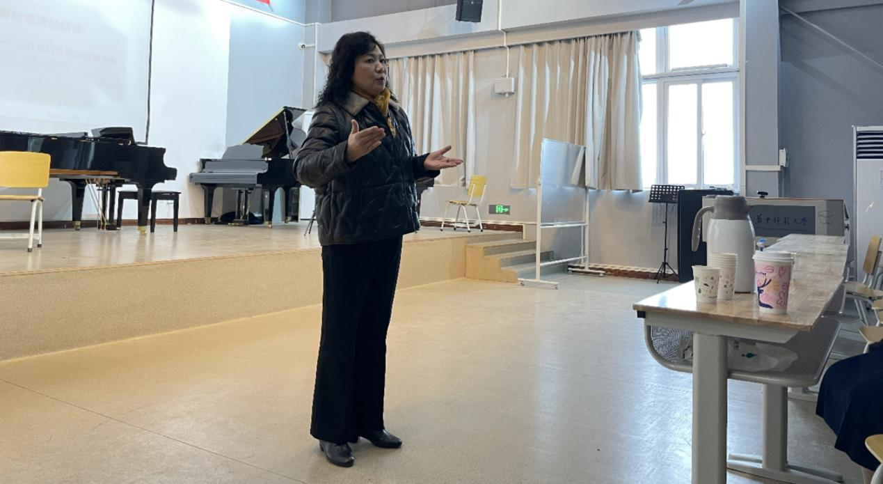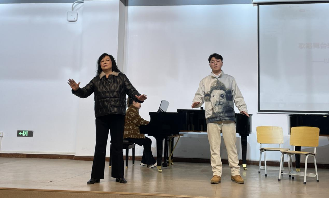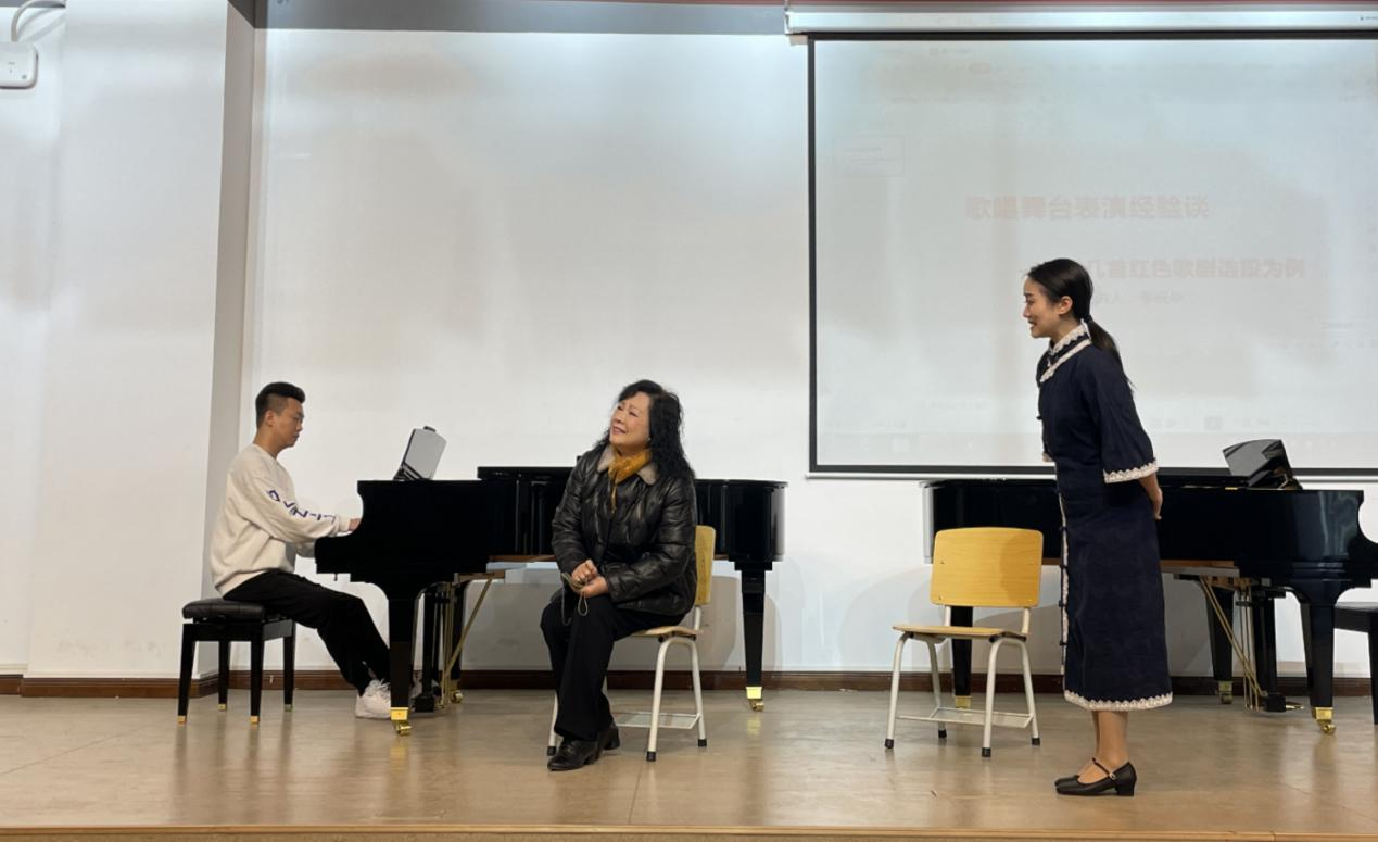 李祝华老师是歌剧《洪湖赤卫队》主要角色韩英的第二代扮演者,有着丰富的歌剧舞台表演经验,她此次讲座题目是《歌唱舞台表演经验谈 ——以几首红色歌剧选段为例》。讲座中,李老师结合自身歌剧表演的经历,介绍了多年来对歌唱舞台表演的经验体会。同时,李老师挑选了几位同学现场演唱红色歌剧选段,并针对同学们的演唱表现逐一进行了点拨。她不厌其烦,多次起身为同学们做示范,尤其对学生舞台上演的方面,重点给予了指导,希望同学们加强对演的关注、强化舞台实践。