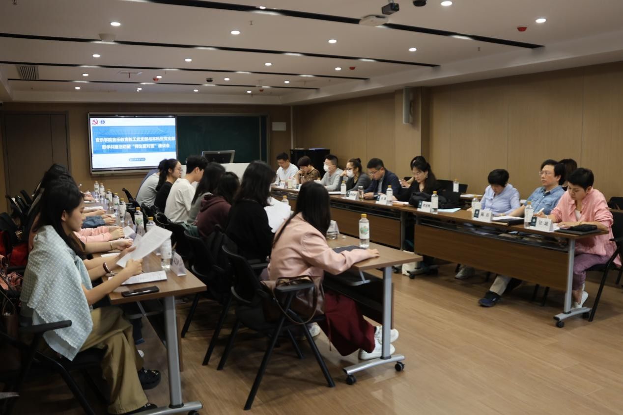 4月16日,我院在音乐学院2号报告厅举办音乐教育教工党支部与本科生党支部联学共建暨“师生面对面”座谈会。此次活动旨在学习贯彻习近平总书记关于深入贯彻中央八项规定精神学习教育的重要讲话和重要指示精神,落实党中央和学校部署要求,教育引导党员干部锲而不舍贯彻中央八项规定精神,推动党建与学院事业深度融合发展。党委副书记陈晓刚、音乐教育教工党支部全体党员、相关系部教师代表、本科生党支部党员和入党积极分子等参加活动。活动由音乐学本科生党支部书记、团委书记陈龚泽祖主持。