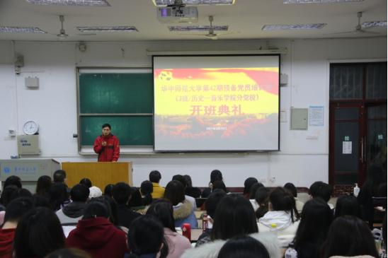 3月19日晚,华中师范大学第42期预备党员培训班(3班)开班典礼在7101教室举行。开班典礼由音乐学院党务干事吴文劼主持,历史文化学院党委书记纪红、音乐学院党委书记冯圣兵、音乐学院党委副书记董志雄、班主任周霖、带队老师史亚楠、王康出席开班典礼。