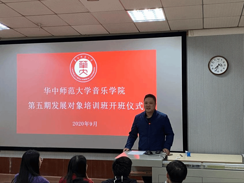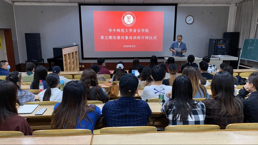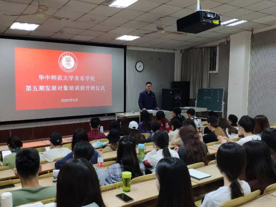 2020年9月25日中午12点,在学校党校统一指导下,为加强思想入党和政治引领,确保被发展党员的质量,音乐学院成功于104教室开展2020年发展对象培训班。院党委副书记董志雄、19级辅导员吴文劼、20级兼职辅导员周霖及全体学员参加了本次培训活动,活动由吴文劼老师主持。