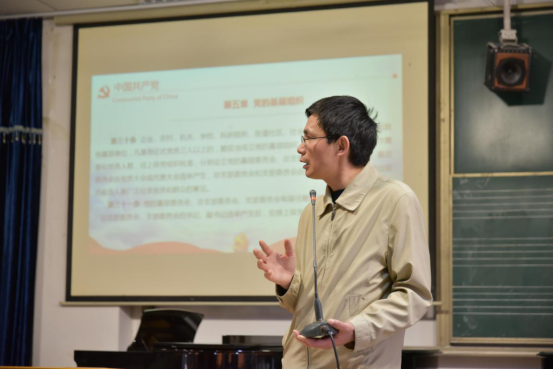 在统计票数的过程中,冯圣兵书记为大家上党课《中国共产党党内选举制度介绍》,详细介绍了我党成立以来党内选举制度的发展进程、现行《党章》关于党内选举的规定以及90多年来党内选举制度的实践成就。
