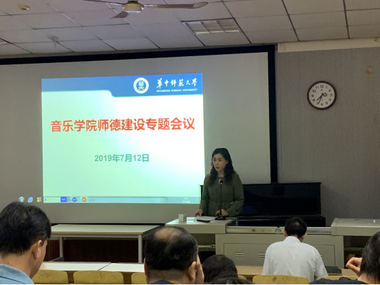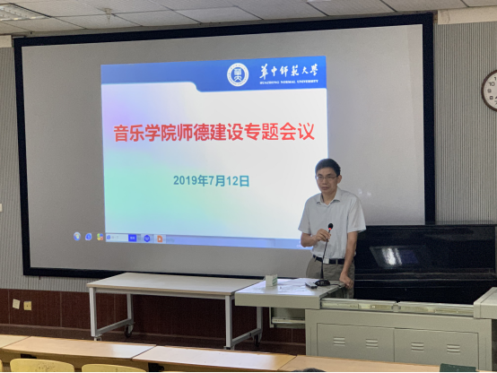 7月12日,音乐学院师德建设专题会议在104教室召开,院党委书记冯圣兵、副院长吴凡、康瑞军、院党委副书记董志雄,和全体教职工参加了会议,会议由冯圣兵书记主持。