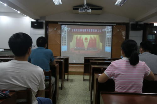 2020年9月8日上午10点,音乐学院组织师生代表在323会议室观看“全国抗击新冠疫情表彰大会”。
