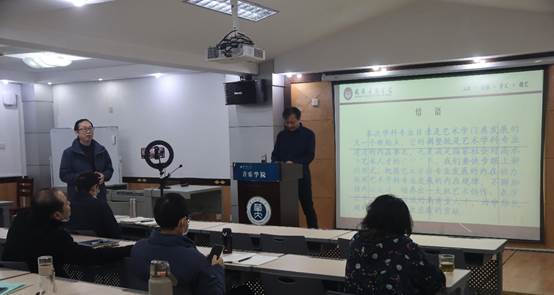 2022年11月25日,因疫情影响,学院采取线上线下相结合的形式同步开展教职工专题理论学习,线下在322教室进行,学院分党委书记冯圣兵主持会议,全院教职工参加。