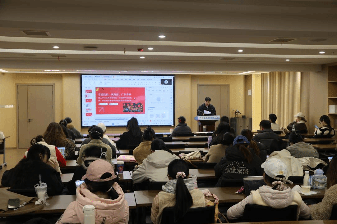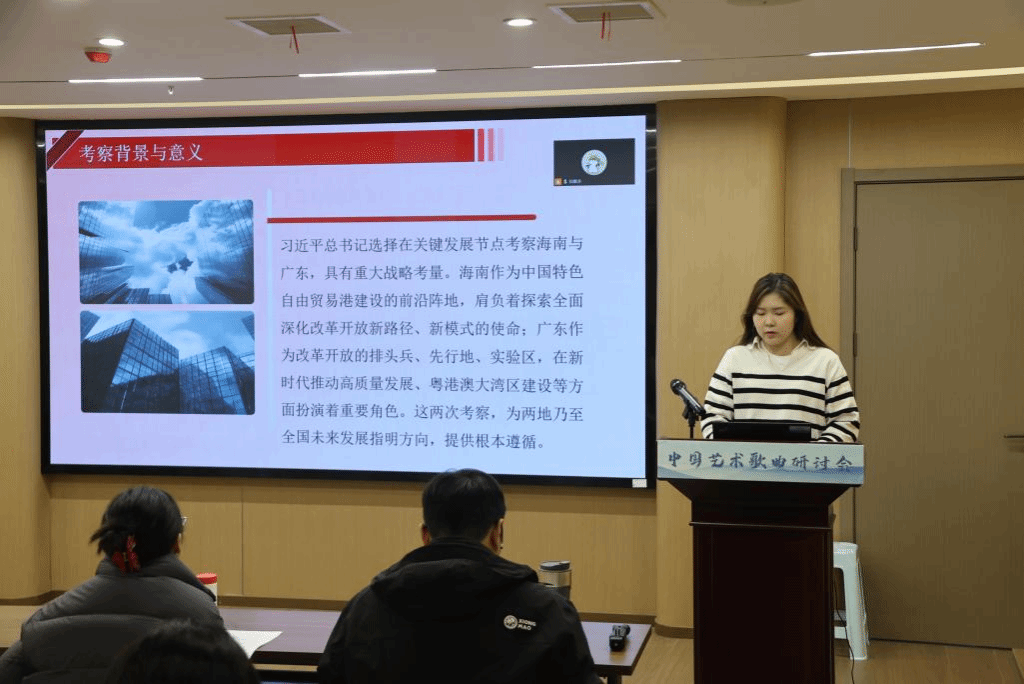 活动中,第一党小组何颖同志以“学习贯彻党的二十届四中全会精神,做新时代有为青年”为主题讲授党课。她结合学生党员的实际情况,带领大家学习了习近平总书记在海南、广东考察时的讲话精神,鼓励大家将理论学习与专业学习、艺术实践相结合,不断提升思想政治素养和专业能力,真正做到学思用贯通、知信行统一。